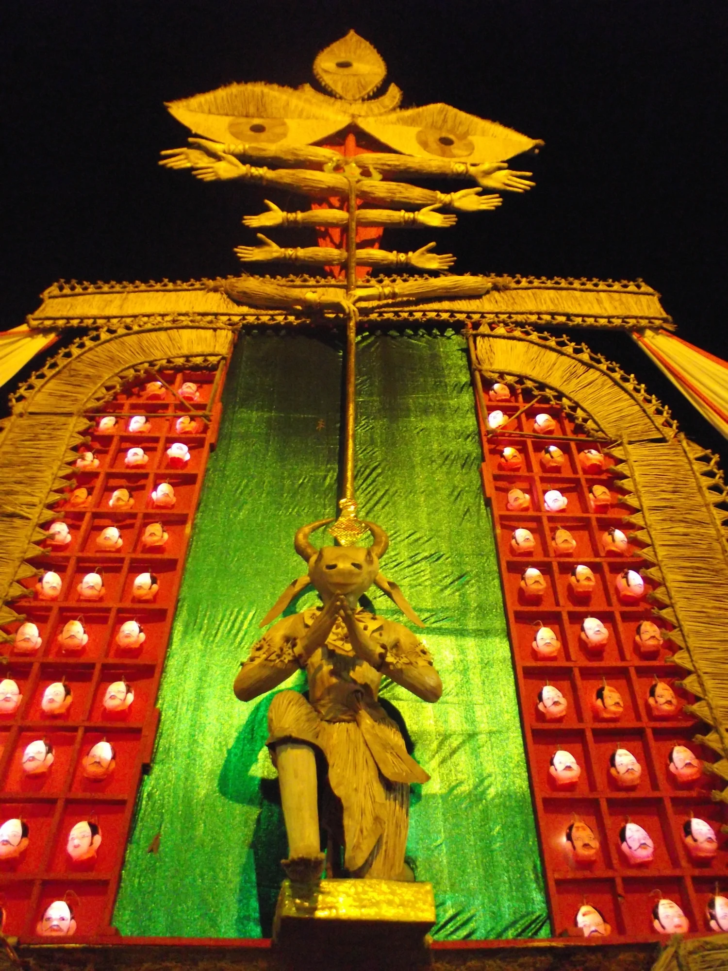 Trinoyoni Durga in the backdrop of a trinoyon. Brilliant piece of work by the idol maker.